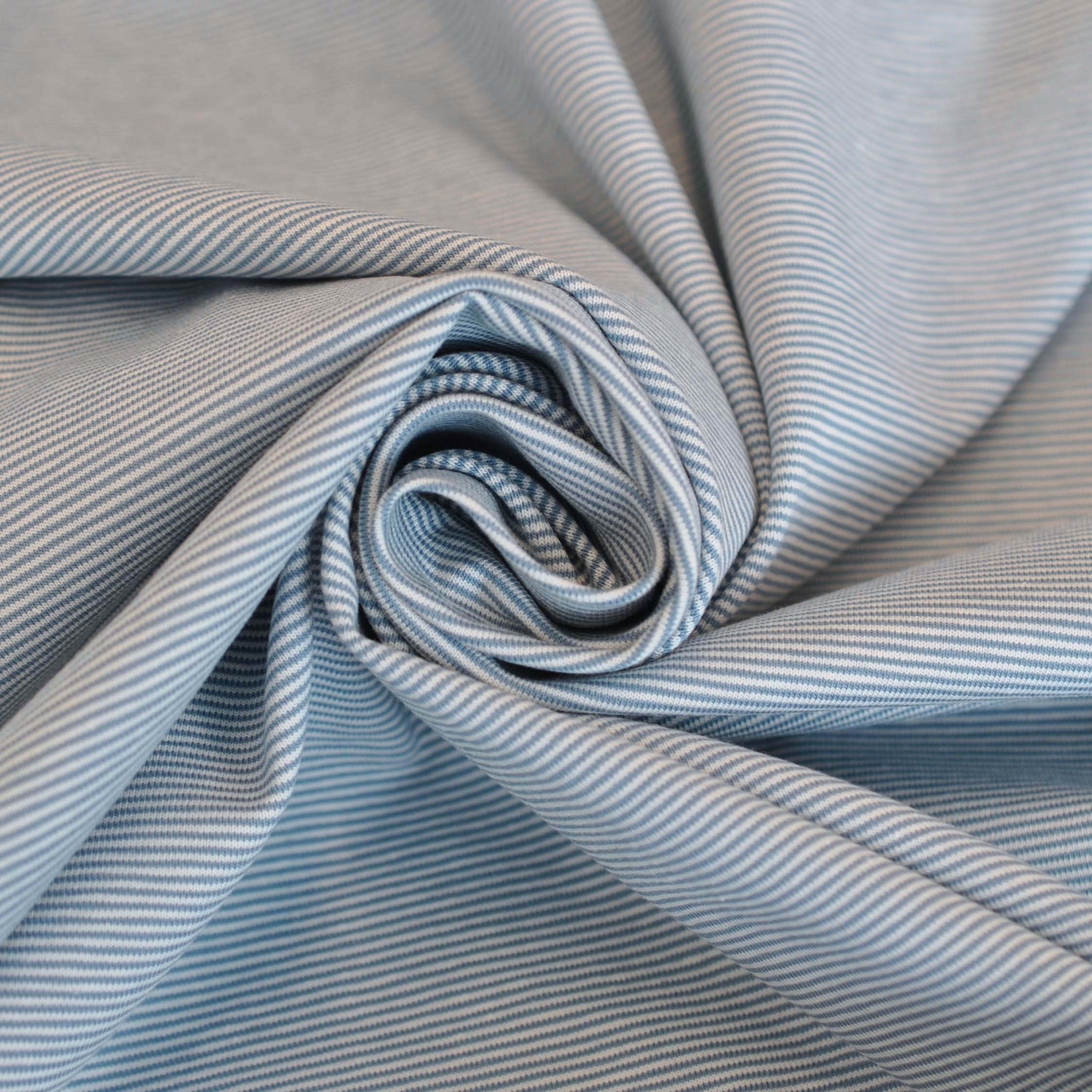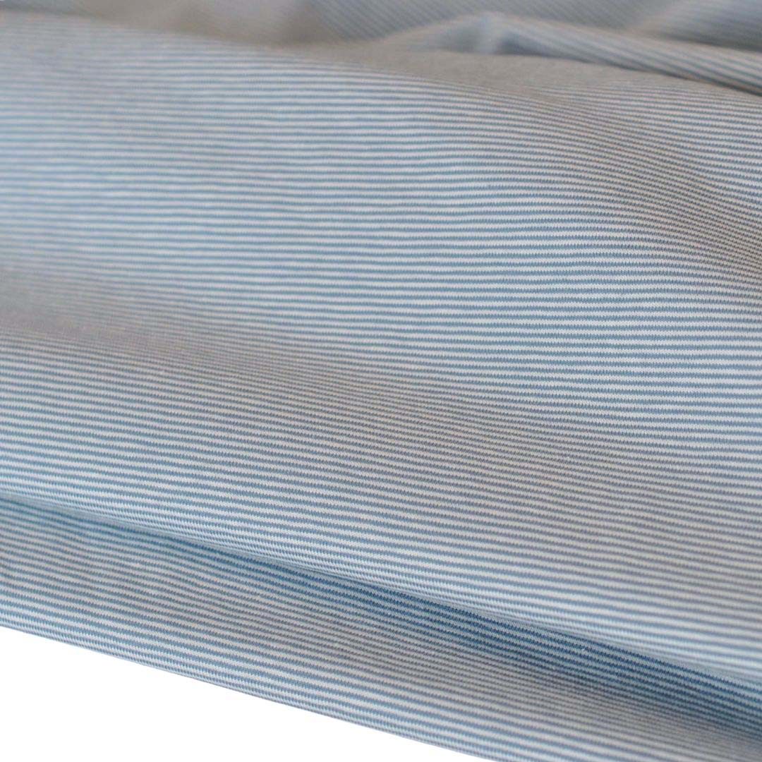 Mini-Stripe Cotton Jersey in Smokey Blue & Ecru