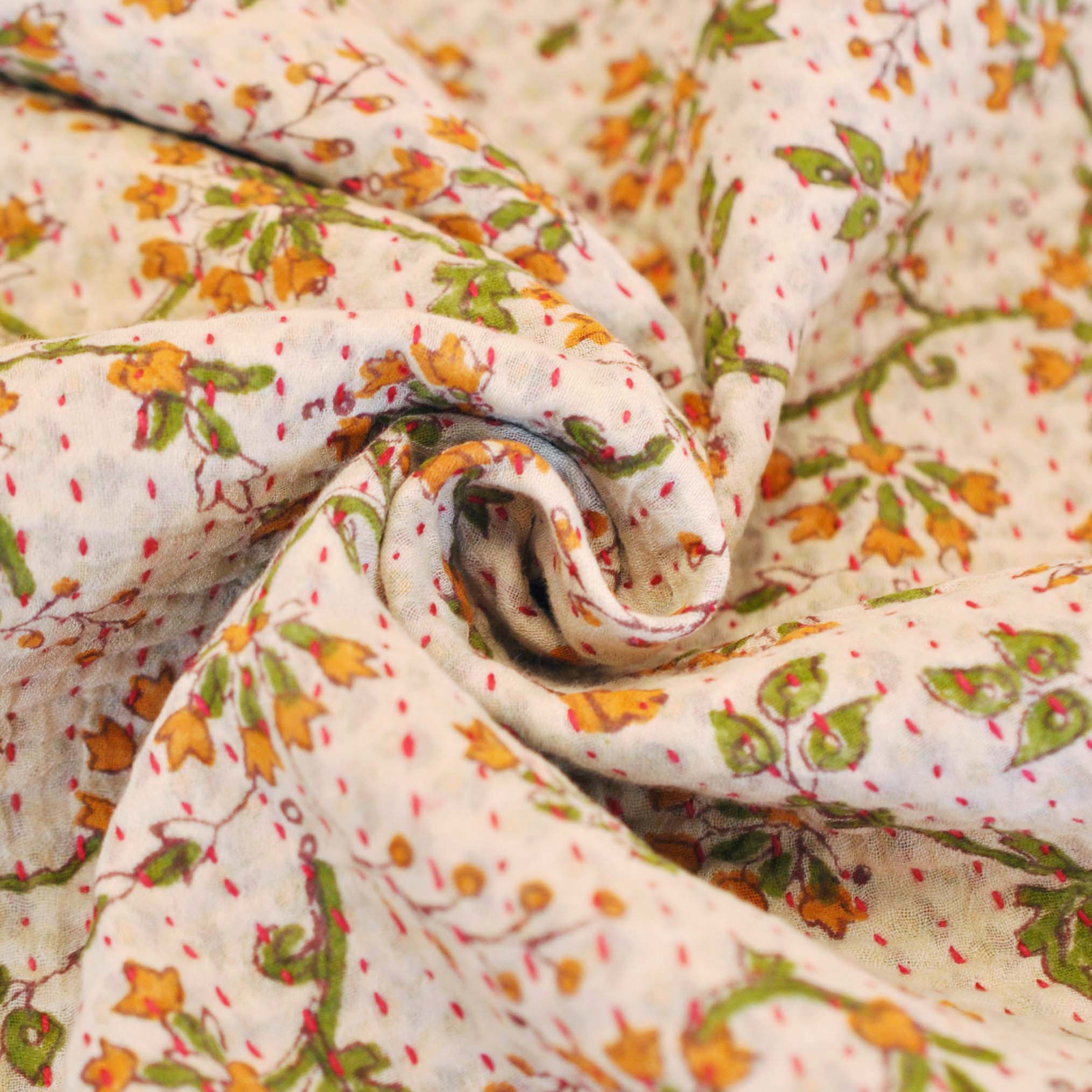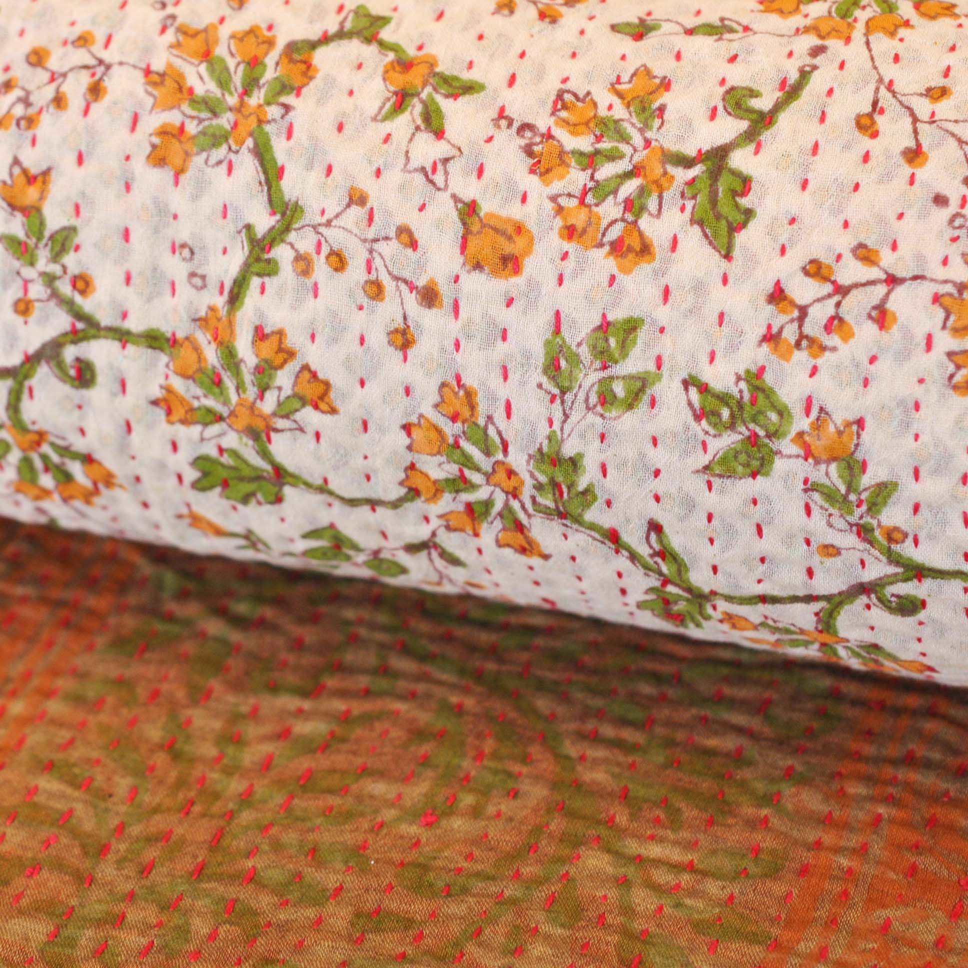 Holistic Needlecraft Kantha Florals in White/Cream with Red Stitching