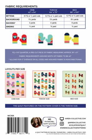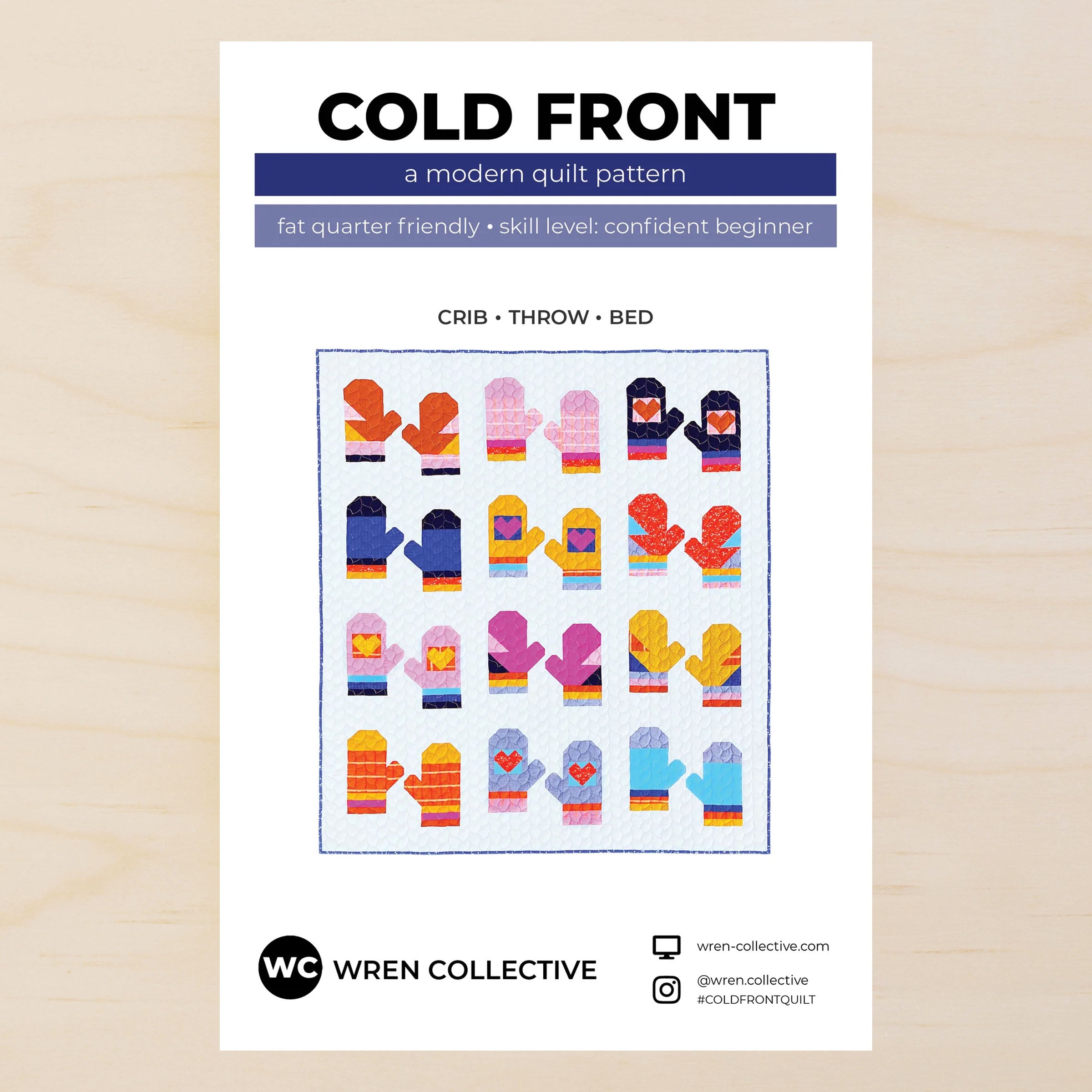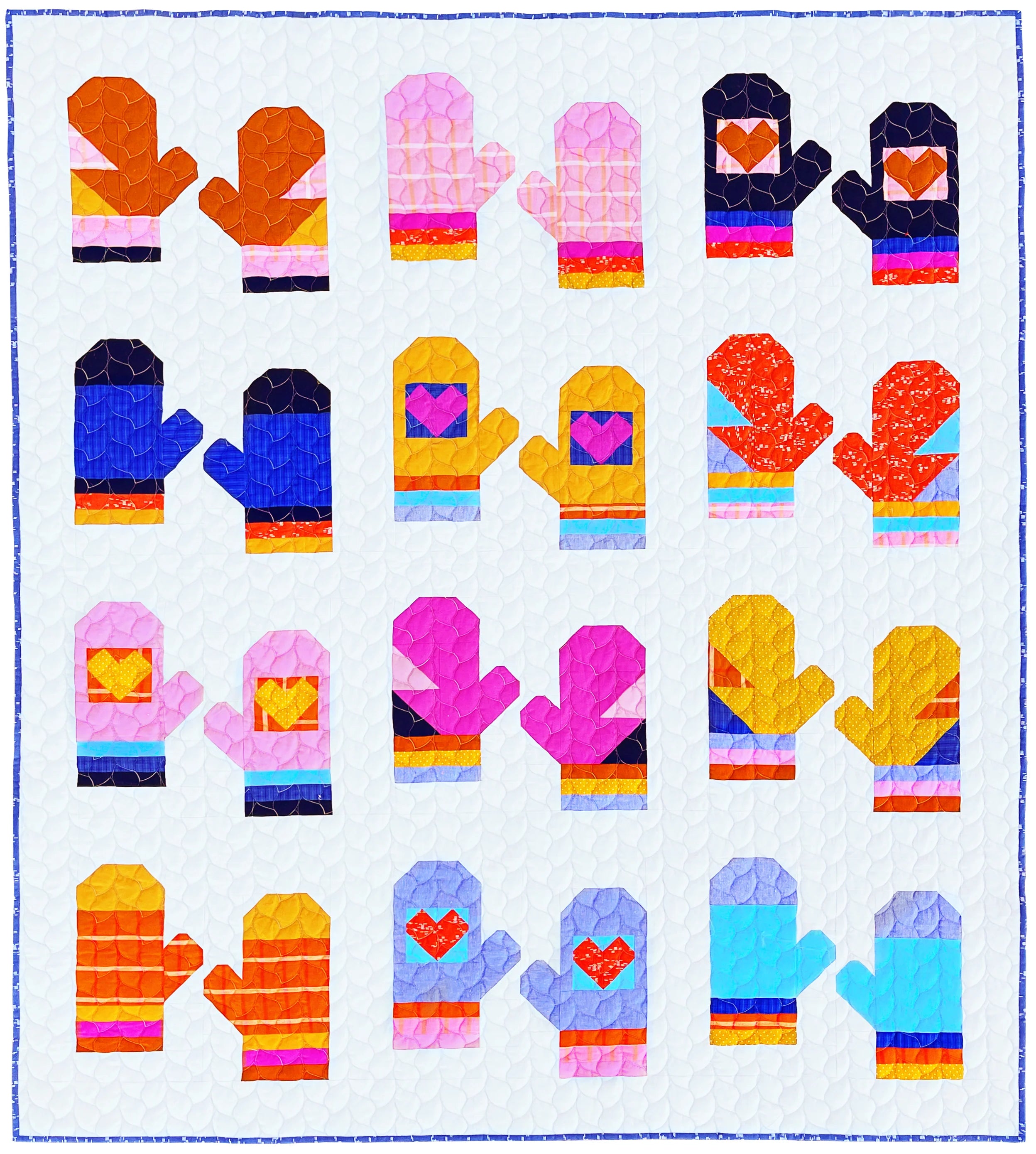 Cold Front is a winter-themed pattern that features a variety of mitten pairs. Cold Front is fat quarter friendly and traditionally pieced, and looks great in solids and/or prints. Labeled as a confident beginner pattern.