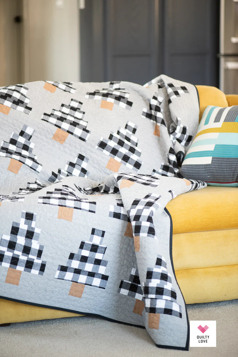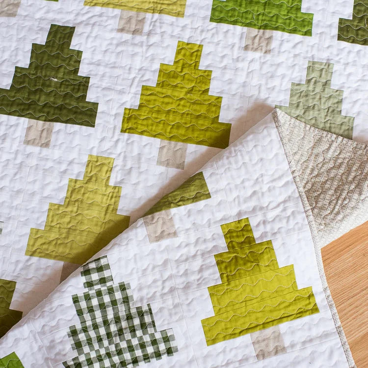 Scrappy friendly tree quilt pattern. Use scraps or your fabric stash for this scrappy star quilt pattern. Easy beginner friendly quilt pattern. Instructions included for both a solid tree block and a scrappy tree block. Use scraps, 10 inch squares, fat quarters or fat eighths. Instructions included to make a baby size, throw size, twin size and queen/king size quilt.