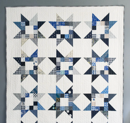 Scrappy friendly quilt pattern! Use scraps or your fabric stash for this scrappy star quilt pattern. Instructions included for both a solid background and a full scrappy background. Use scraps, charm squares, fat quarters or fat eighths. Instructions included to make an baby size, throw size, twin size and king size quilt.