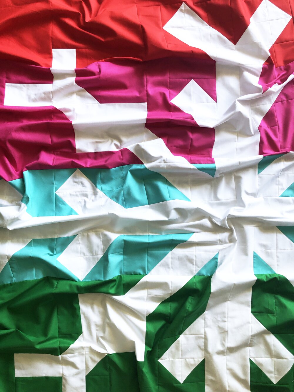 Snowflake Quilt is Modern Handcraft's take on a modern and minimal winter quilt. There are two ways to assemble this quilt. You can follow along with the larger block assembly style on the 1-color or 4-color version or stay simple with the square and HST scrappy version.