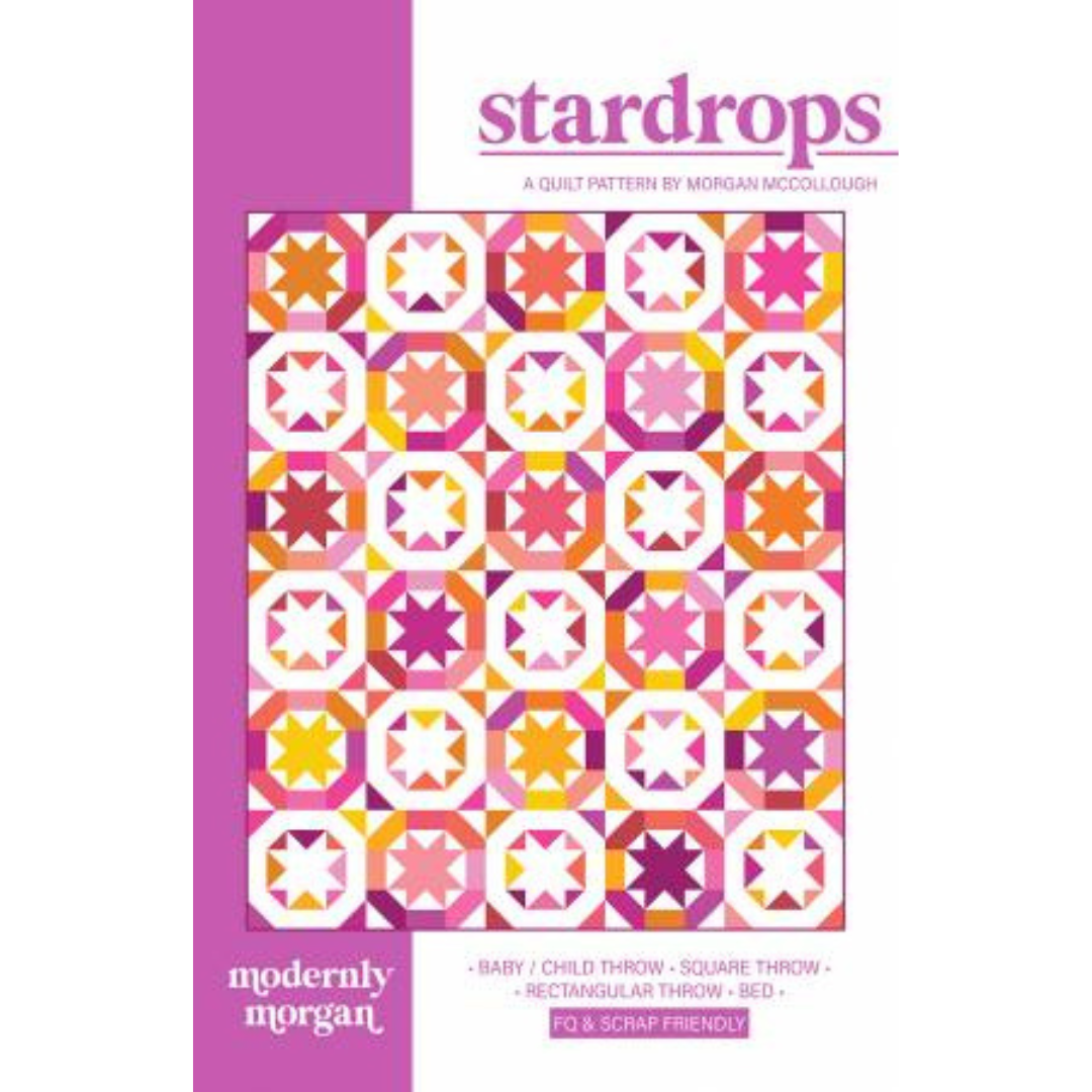 Stardrops is a fat quarter and scrap friendly quilt pattern that celebrates the beauty of falling stars. Cosmic echoes of patchwork stars twinkle throughout this quilt, creating an out-of-this-world heirloom!