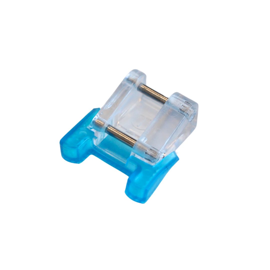 Quick and easy button sewing with the special button sewing foot. This foot has two bars that attach to the foot shank to provide extra stability and also has a textured, rubber sleeve to hold the button securely in place while sewing.