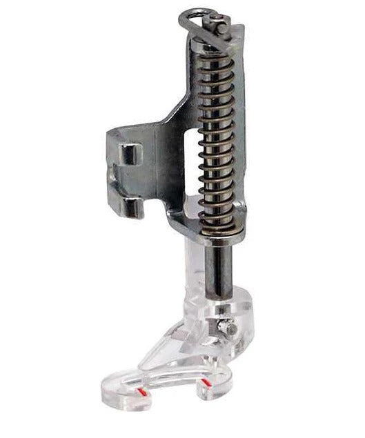 Sometimes referred to as the embroidery foot, the darning foot is used for “free hand” embroidery and darning to ensure proper stitch formation, minimize skipped stitches and puckering and also protect your fingers while you move your fabric freely under the needle. Especially beneficial to those just learning how to do free hand embroidery. The open toe version greatly improves visibility of stitches and is especially popular with quilters.