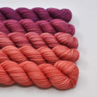 Each Party of Five mini-skein set contains five 105-yd / 96 m hand-dyed skeins in our popular Tough Love Sock yarn (80% Superwash Merino, 20% Nylon).
