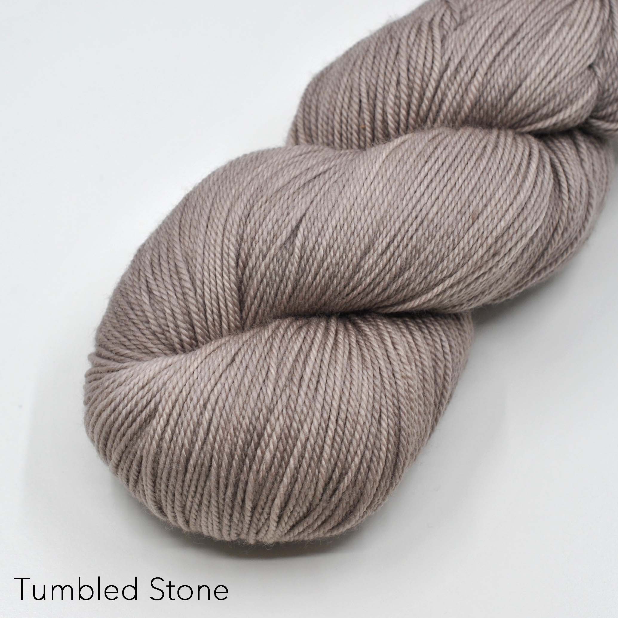 A perfect blend of warmth and strength to make a hardwearing sock yarn that can stand up to your affection and abuse. Tough Love Sock is our best-selling yarn and knits up beautifully into fine-gauge sweaters, small shawls, as well as socks! Spun from 80% superwash and super soft merino and 20% nylon, this 3-ply yarn is so versatile, knit it firmly for hard wearing socks, knit it loosely for drapey shawls or knit it doubled for a great worsted weight substitute.