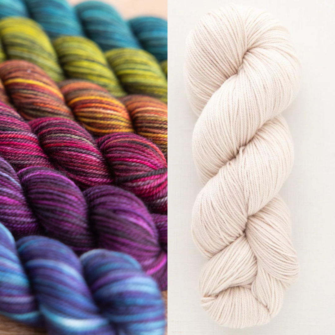 Discover our assortment of beautiful fingering weight yarns from around the world. Buy four skeins of Regular Priced yarn and get the fifth for Free! No code necessary!