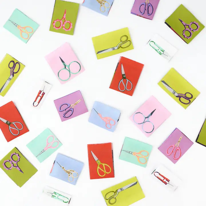 Show your love for your most treasured tool—your snips! The Snip Snip woven label pack features 8 unique designs in two colorways, for a total of 8 double-sided, folded labels. These playful, detailed labels are perfect for adding a professional touch to your handmade bags, garments, quilts, or gifts. Whether you’re stitching for fun or function, these labels are the perfect finishing detail for makers who protect their snips at all costs!