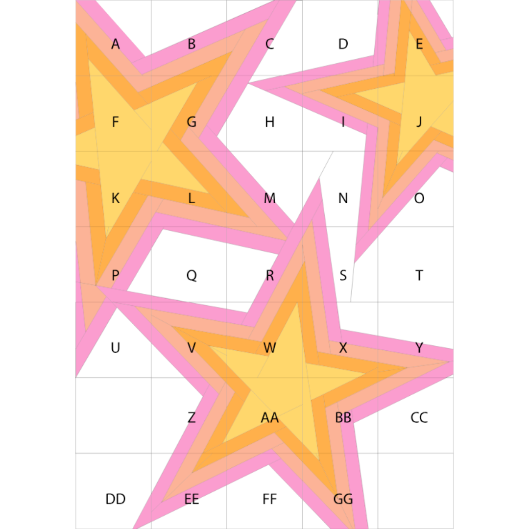 Rockstar is a fun baby/crib sized FPP quilt pattern featuring three large stars. It is broken down into 7.5 inch squares for easier piecing and completion.