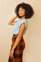 The Square Neck Top is a boxy dolman sleeved top with a square neckline. It is slightly cropped. It is a great beginner sewing pattern and includes pattern pieces to make the top from a knit or woven fabric!