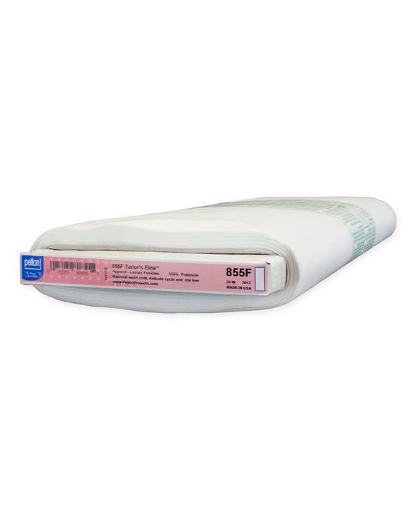 855F Tailor’s Elite™ is a high performance interfacing from Pellon®’s family of luxury fusibles, offering soft, supple results. It is a stitch-reinforced, fusible, nonwoven interfacing designed for medium to heavy weight woven and knit fabrics, including gabardine, poplin, linen, fine wale corduroy, synthetic suede, double knit, wool, and wool blends. Tailor’s Elite™ is great for controlled support and tailored shaping in suits and coats.