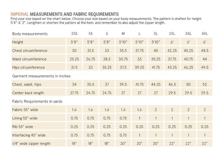 A heavy-duty vest sewing pattern for woven fabric in sizes 2XS-4XL" with the following features: