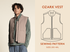 Ozark is a casual urban vest, perfect for transitional weather over a sweater or hoodie. The Ozark Gilet sewing pattern has big patch pockets on the outside and inside. The collar is cut in rib material, and the Vest is closed with a heavy metal zipper.