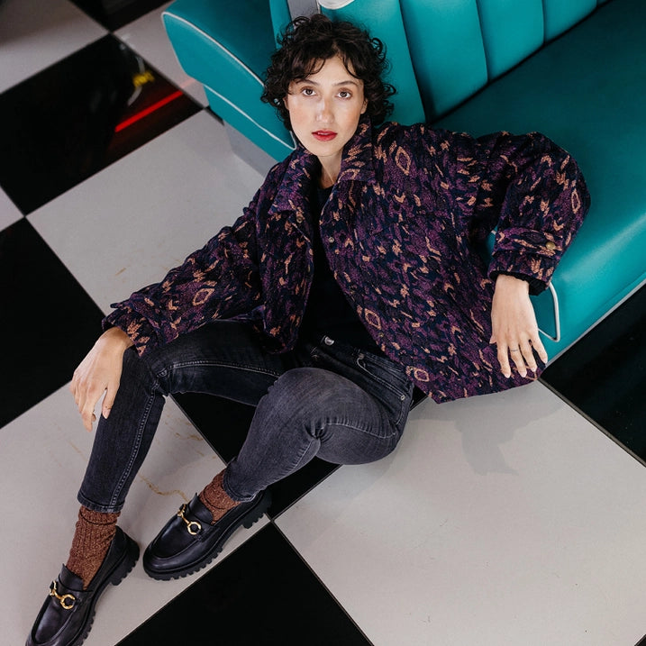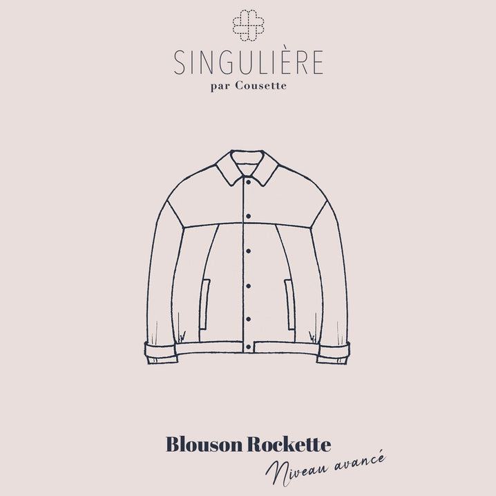 Jacket sewing pattern. Rockette is a cropped, oversized jacket that's easy to live with with its low armholes and denim jacket-style collar. Nice details give it character, such as the cutout pattern, the pockets and the inlaid bottom band. You can make it doubled or not, and in a wide variety of fabrics, it will follow you in all seasons.