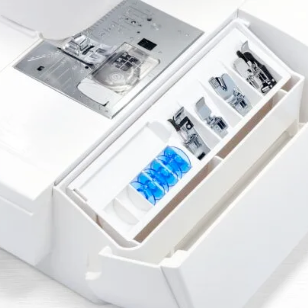 The easy to read LCD display provides direct access to the 196 stitches (up to 9 mm wide) and 10 one-step buttonholes. Personalize your projects and stitches with the four built-in fonts. To make sewing easier and brighter, the Skyline S6AE features six bright LED’s in three locations and even has an adjustable knee lifter for hands-free presser foot lifting. The superior needle threader, automatic thread cutter, reverse and lock stitch buttons make sewing effortless.