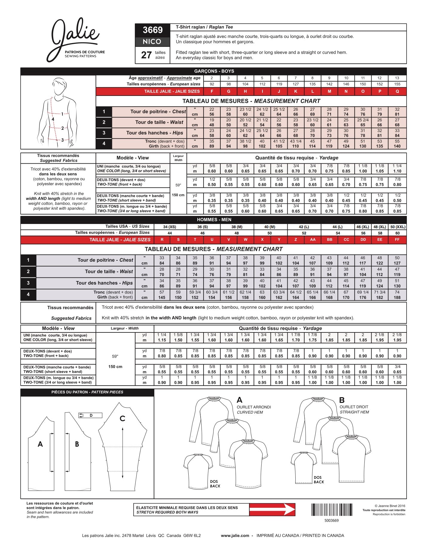 Jalie 3669 - Nico Men's Raglan 2yrs-XXL