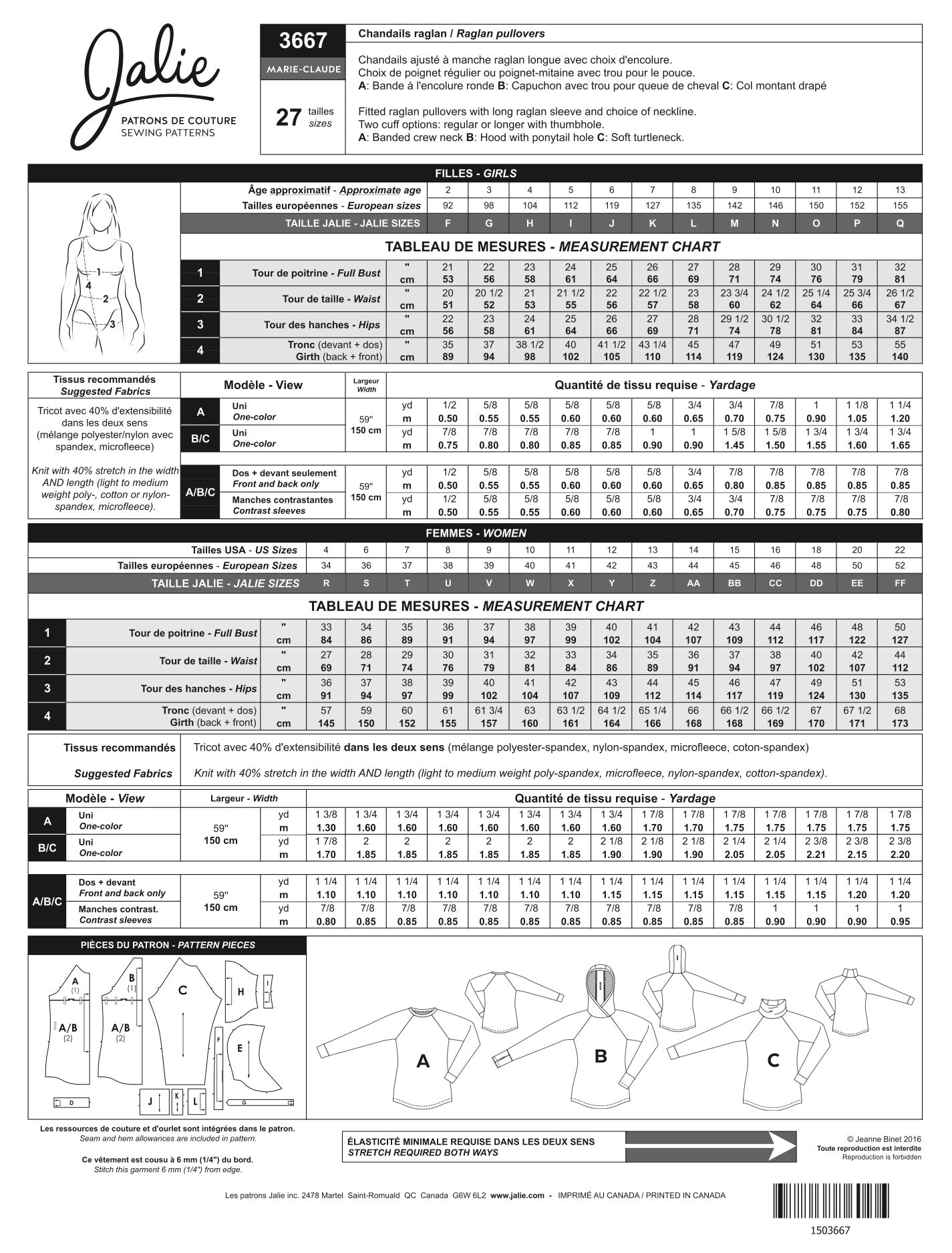 Jalie 3667 - Marie-Claude Raglan Pullover 2yrs-22