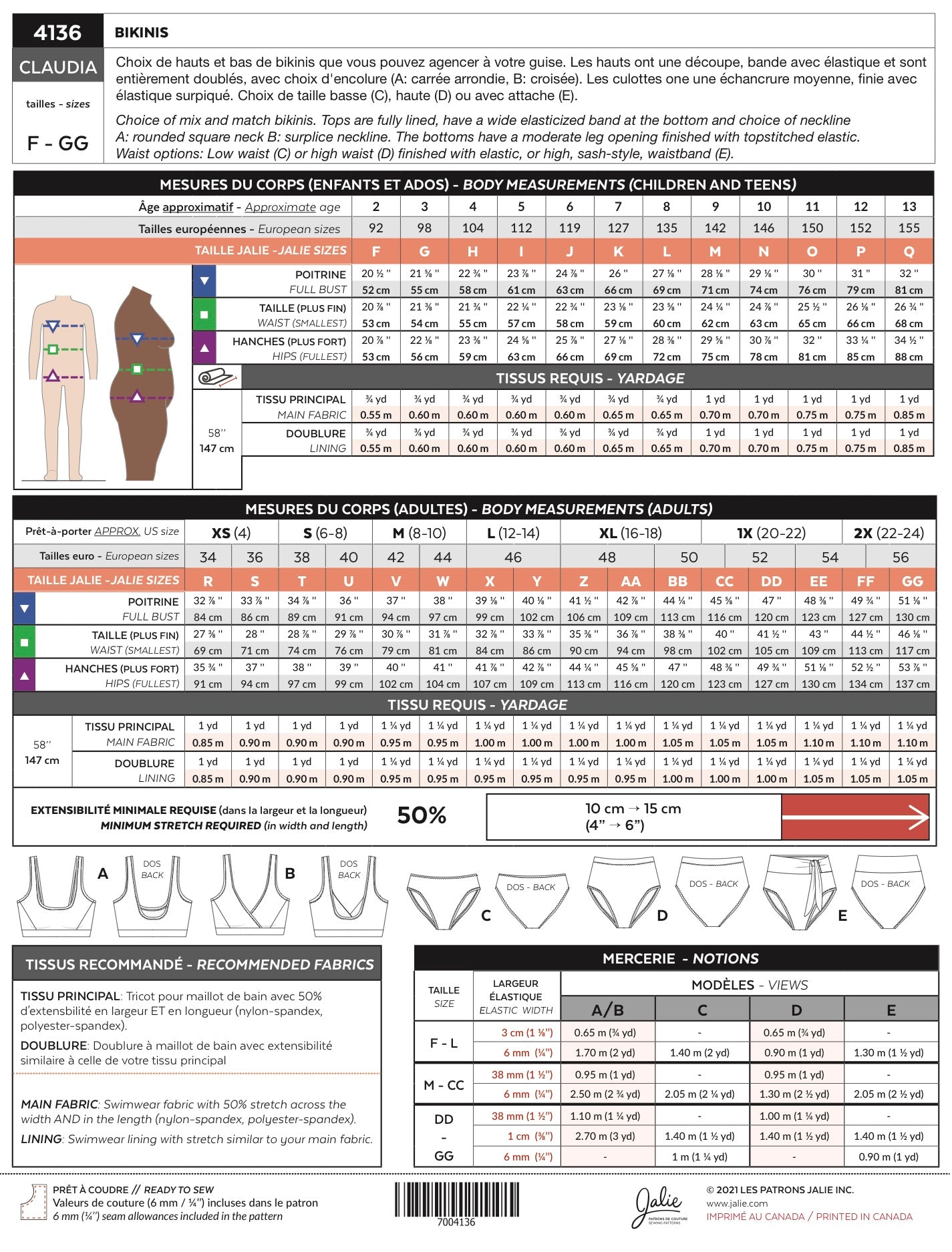 Jalie 4136 - Claudia Bikinis 2yrs - 2XL