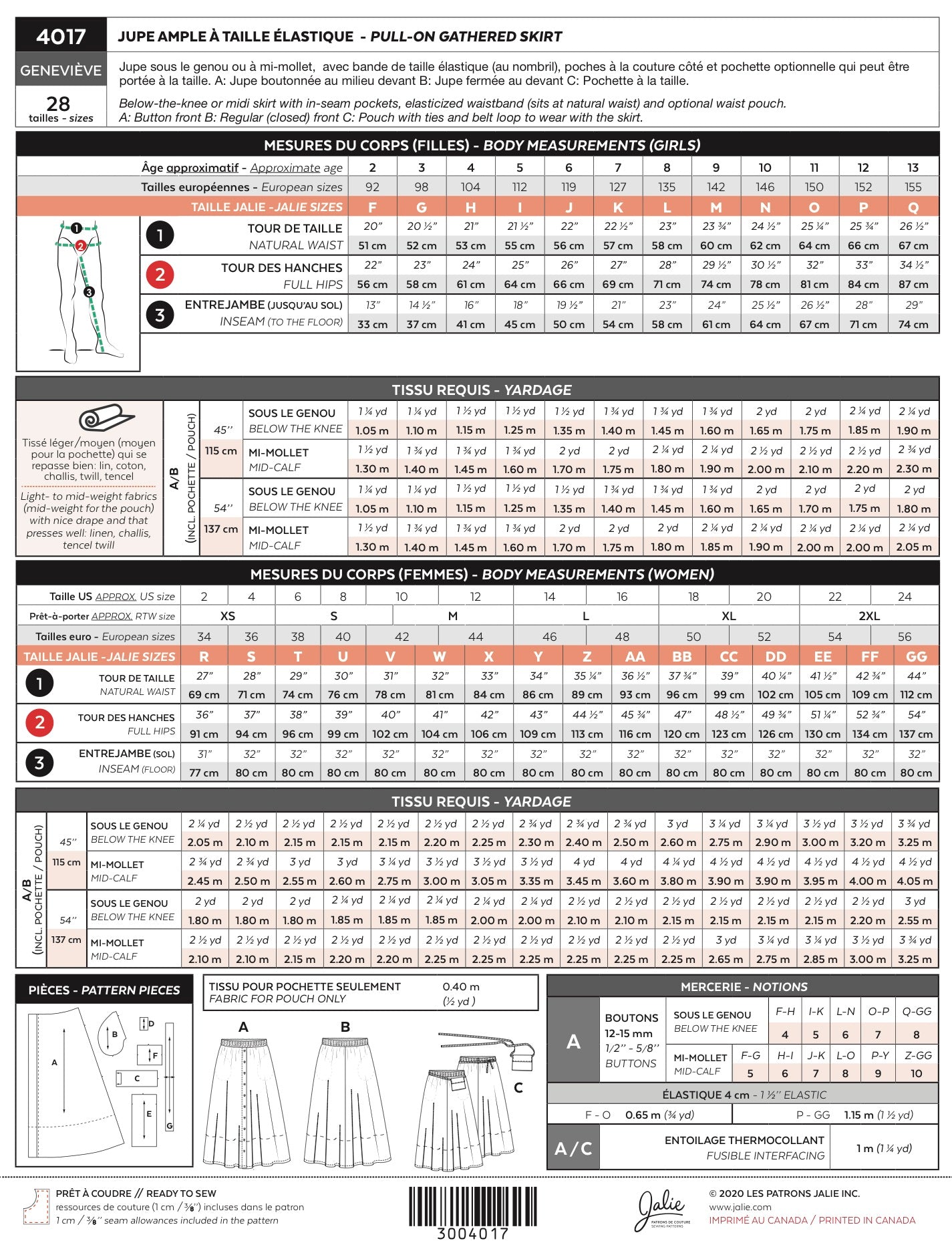 Jalie 4017 - Genevieve Pull-on Gathered Skirt 2yrs-2XL