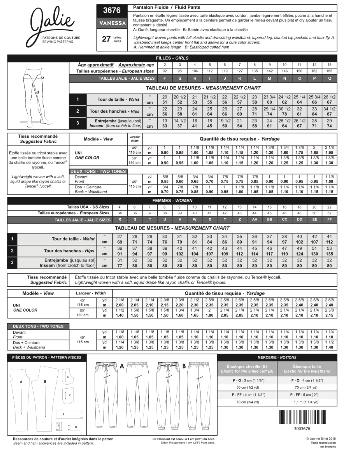Jalie 3676 - Vanessa Fluid Pants 2yrs-2XL