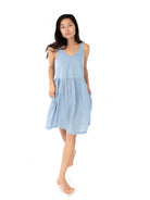 - Dress with bodice finished like tank A and a roomy above-knee skirt (with pockets) that starts just above natural waist (C).
