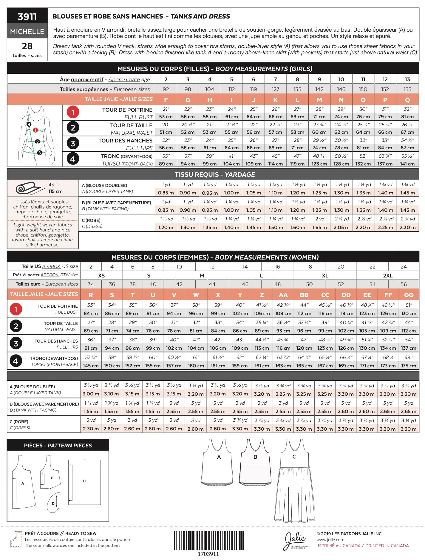 Jalie 3911 - Michelle Tank Top & Dress 2yrs-2XL