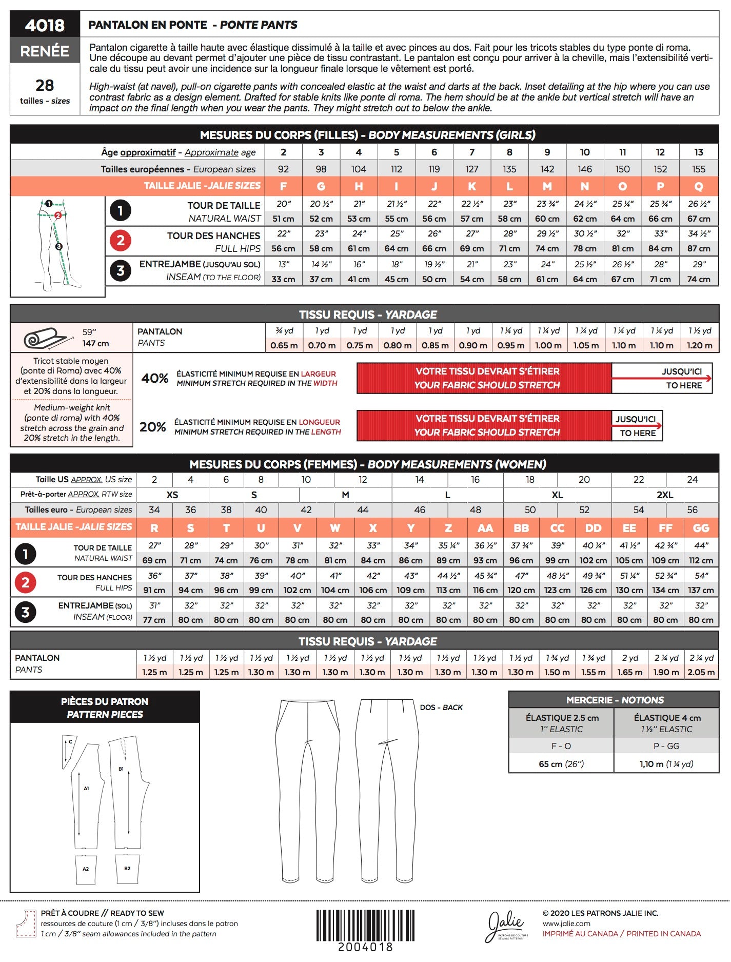 Jalie 4018 - Renée Ponte Pants 2yrs-2XL