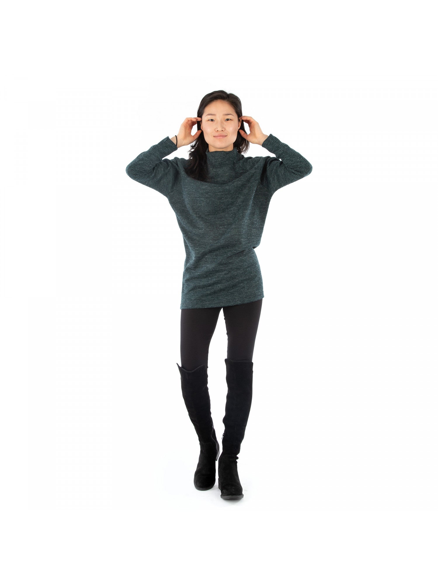 Loose-fitting raglan sweater and tunic with a batwing effect, funnel neck without neck seam and sleeve cuffs. The perfect pattern for beginners!