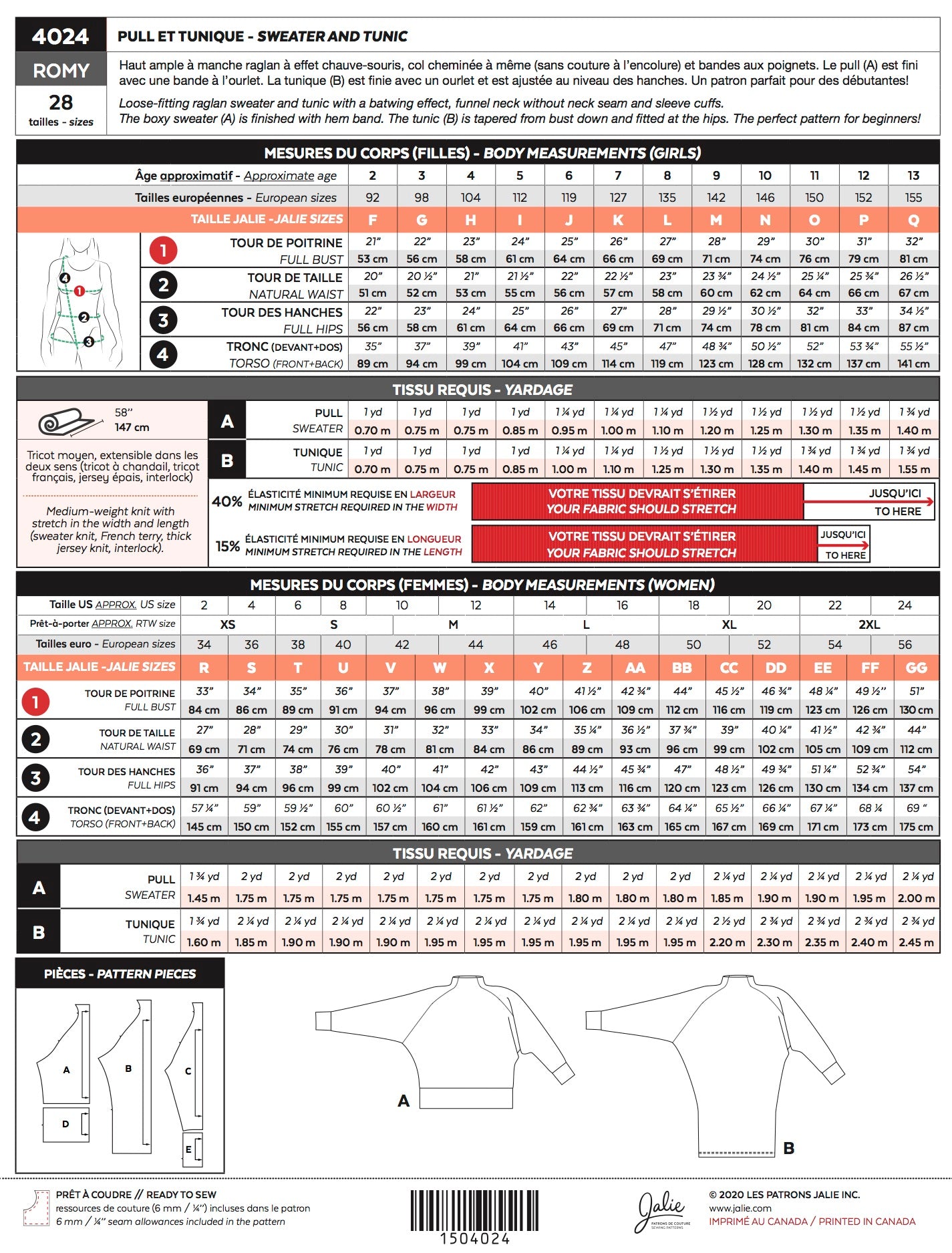Jalie 4024 - Romy Sweater and Tunic 2yrs-2XL