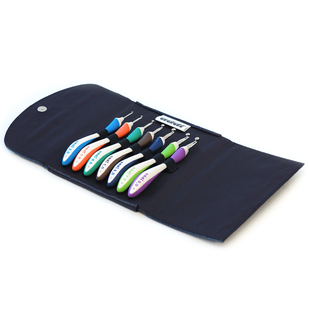 Favoured by crocheters around the world, the ergonomic addi® Swing Hooks have just a hint of flexibility, and fit right into the curve of your hand to allow for a more comfortable hooking and less fatique.