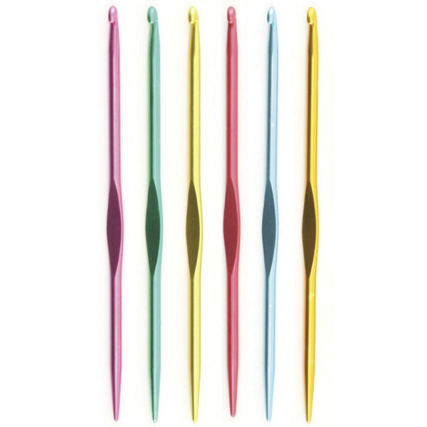 Bates Handi Tool is one of those nifty gadgets that once you have used it you wonder how you ever lived without it. This handy little tool is the combination of a knitting needle on one end and a crochet hook on the other! It is ideal for picking up dropped stitches, tying on fringe, use as a cable needle in a pinch, or as a replacement tool for the French Knitter and Knitting Knobby.