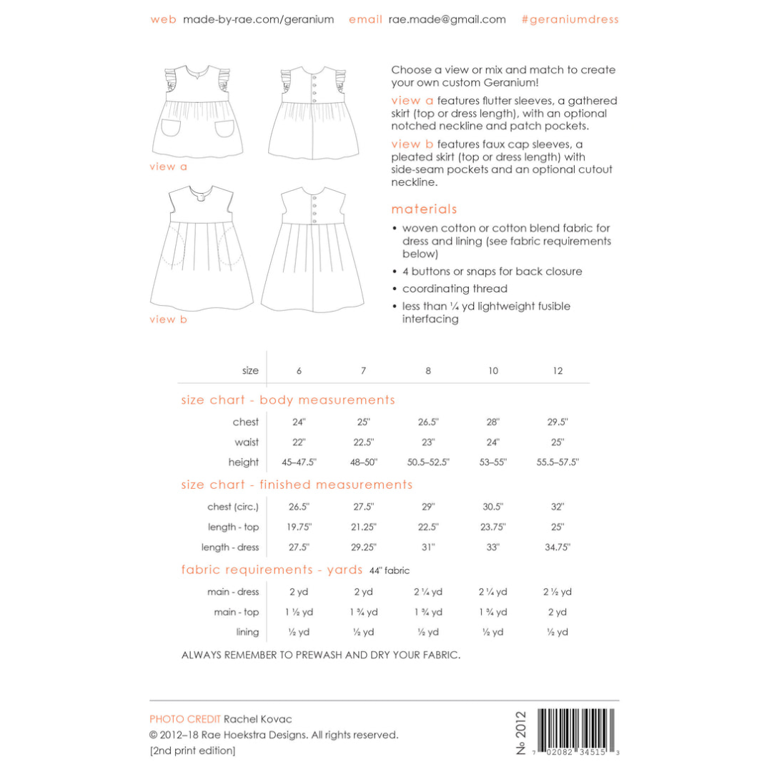 Made by Rae Geranium Dress & Top Sizes 6-12 years