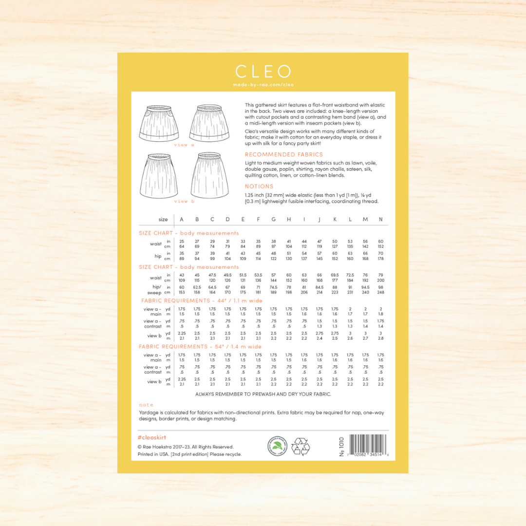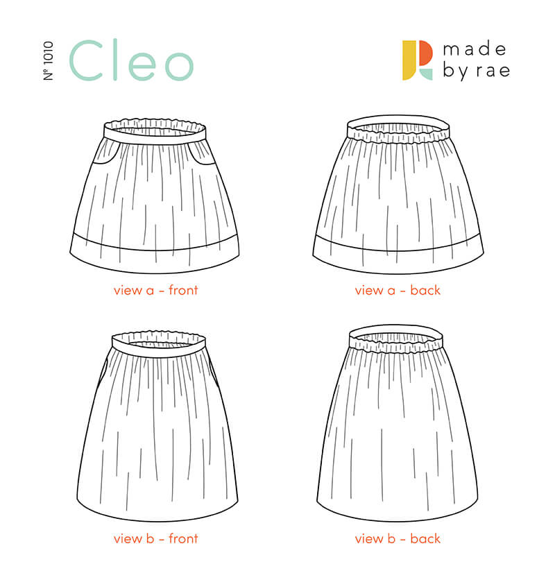 Cleo’s versatile design works with many different kinds of fabrics; make it with cotton for an everyday staple, or dress it up with silk for a fancy party skirt!