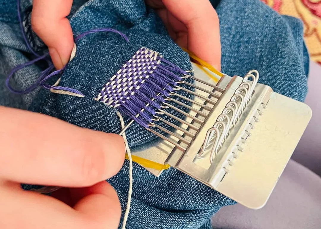 Mend your sweaters, jeans, shirts, bags, plus more with the SpeedWeve 14 Hook Darning Loom! Create all kinds of fun designs. Use all 14 hooks or less, if you want a smaller design. Uses only a minimal amount of yarn/embroidery floss and a long darning needle, then let your imagination go!