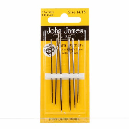 Yarn Darners (sometimes called Short Darners in sizes 14-18) are very long hand sewing needles with long eyes and are ideal for spanning large holes during mending, using yarn or cotton. Sizes 14/18 are known as Wool or Yarn Darners and are commonly used in the art of knitting or crocheting to sew pieces of work together. This pack contains 6 sewing needles x assorted sizes 14/18.