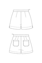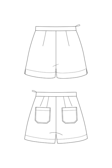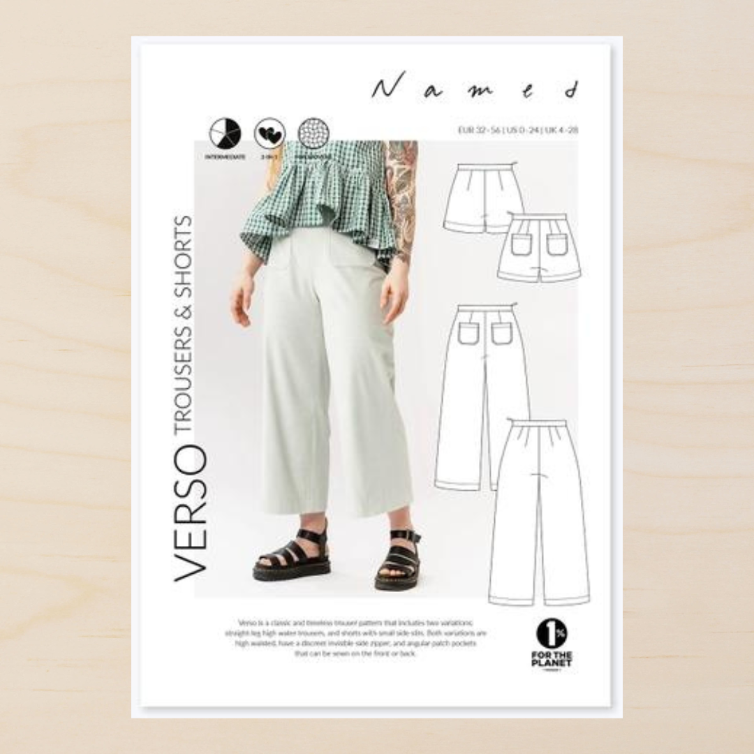 Verso is a very classic and timeless trouser sewing pattern that includes two variations: straight-leg high water trousers, and shorts with small side slits. Both variations are high-waisted, have a discreet invisible side zipper, and angular patch pockets that can be sewn on the front or back.