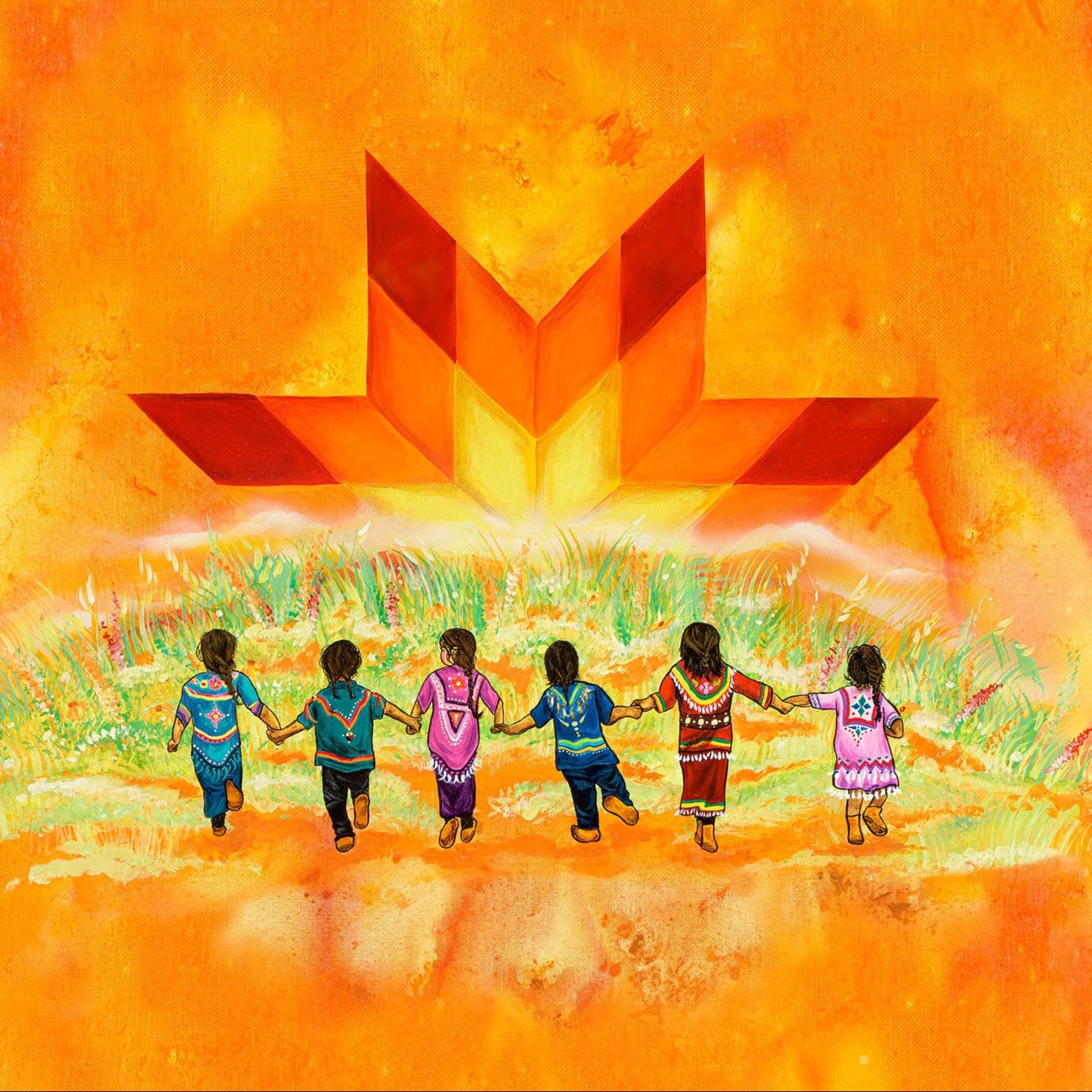 Considering the traumatic events that unfolded at former Residential Schools, Shawna Boulette Grapentine created 'Always in Our Hearts' out of reverence to those grieving. The children who are shown holding hands, were torn apart from each other but are now reunited as they make their way home.