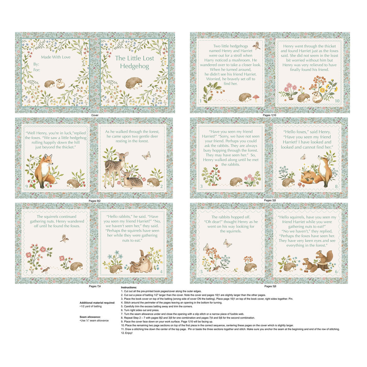 Bring woodland whimsy to your nursery with the Woodland Heart collection by Deborah Edwards and Kathryn Christenson for Northcott Fabrics, featuring sweet forest illustrations. This fabric is digitally printed, giving it brighter, more vibrant colors than traditional screen-printed fabrics. Create a sweet book for a little one with this project panel featuring The Little Lost Hedgehog, a heartwarming story brought to life with adorable woodland animals and soft, storybook-style illustrations.