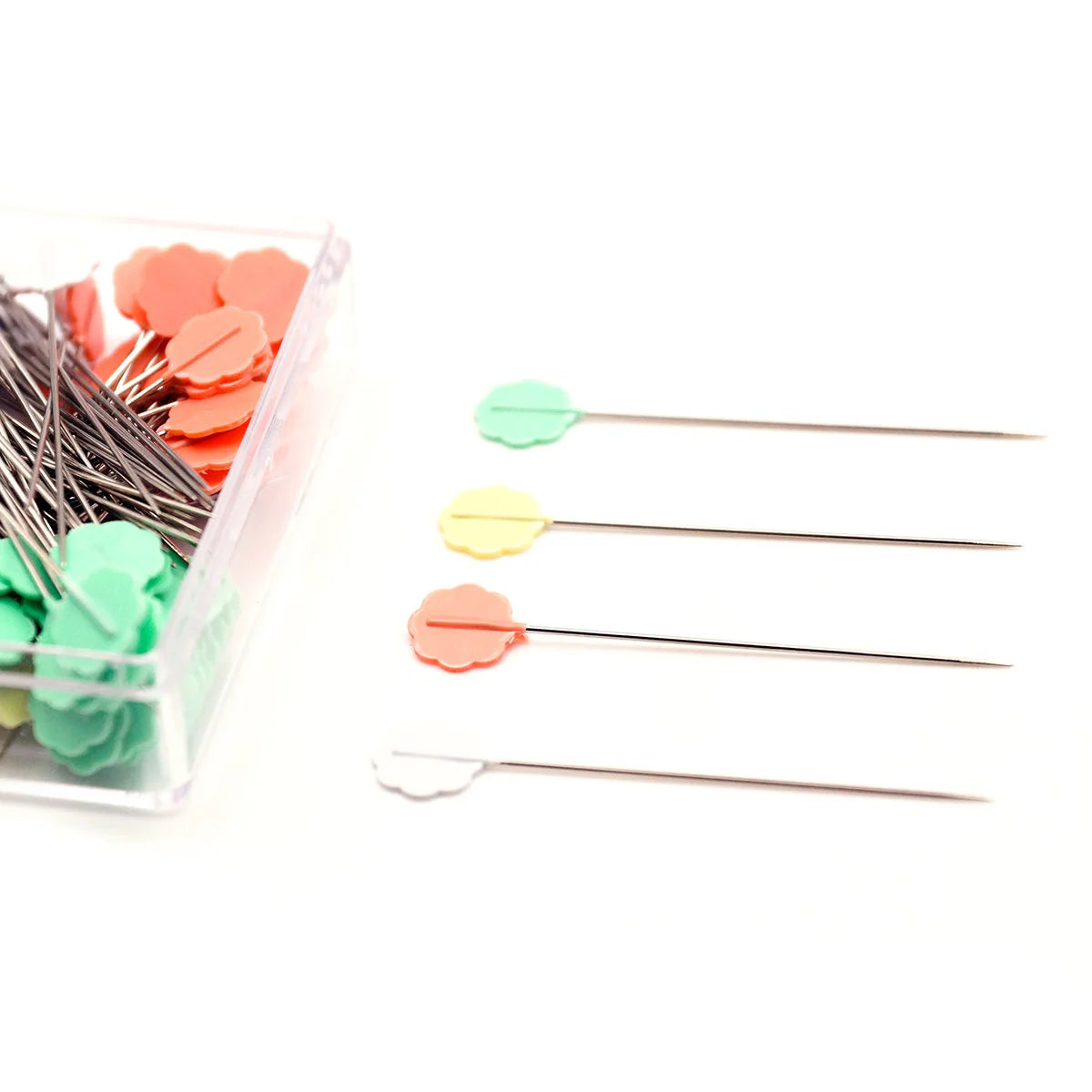 Boxed. Thicker size of Flower Head pins. The flat head is convenient for machine stitching. Head is not heat-resistant Do not apply iron directly.