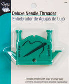 Dritz Threaders are the perfect tools for threading needles, elastic, drawstrings and more. Deluxe Needle Threader by Dritz. Threads needles with small or large eyes. Insert the thread in the groove, set the needle eye part down in the funnel and press the lever. A small loop will appear, pull loop until the end of the thread comes out. Designed to be used with hand needles. Cutter will not cut fingers.