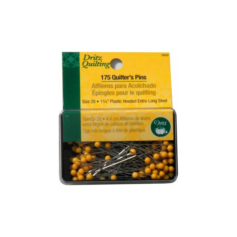 Make quick and easy quilting projects with the Dritz Quilters Pins. The package contains 175 pins with a colored head to use for different art and paper crafts. These pins come with a sharp tip that’s ideal for basting fabrics. You can also add a fun dimensions and colors to your scrapbooks, greeting cards, gift boxes, posters and paper crafts using these quilter’s pins. These pins are NOT heat resistant.