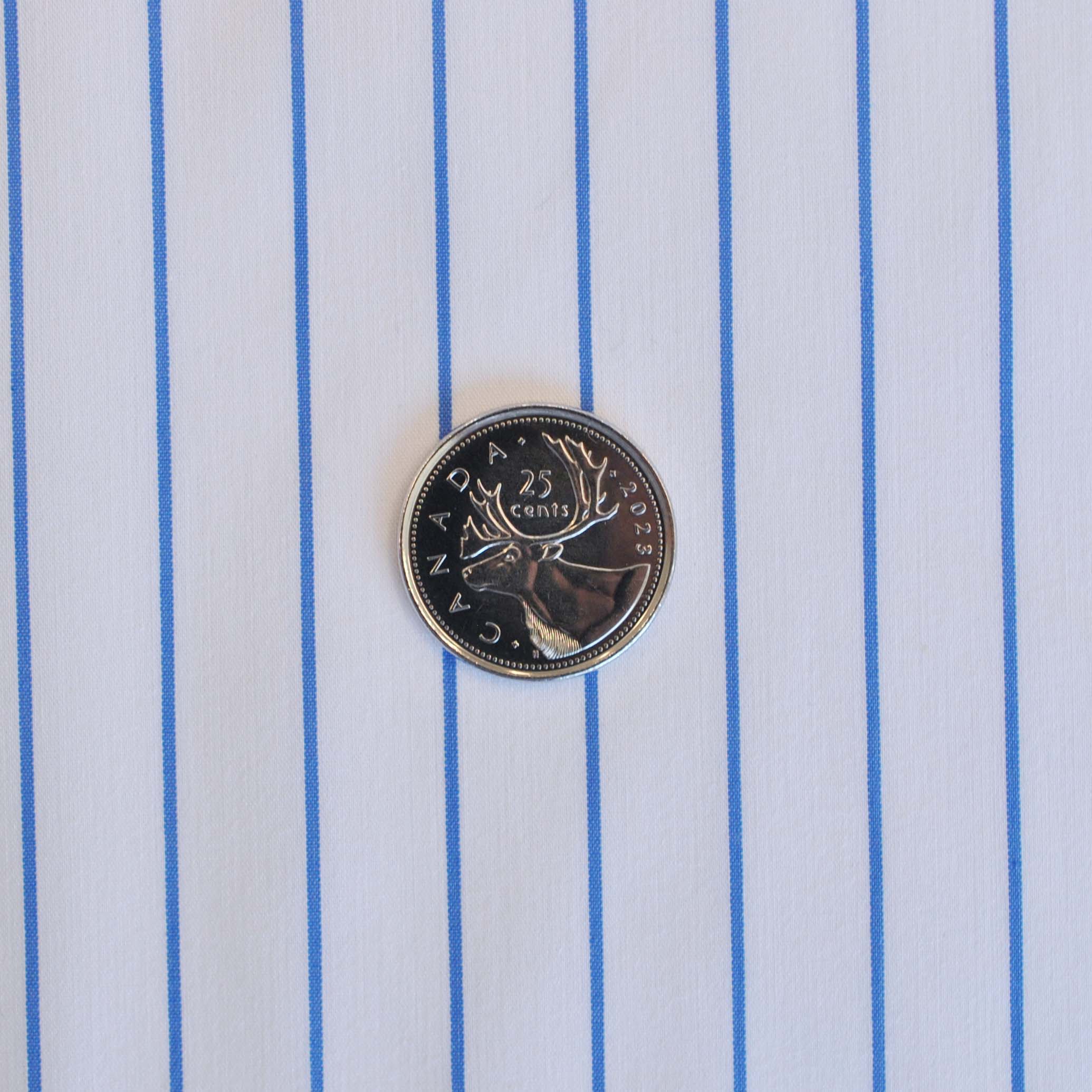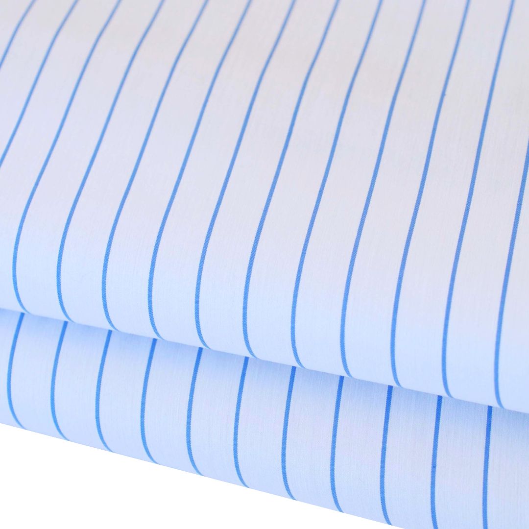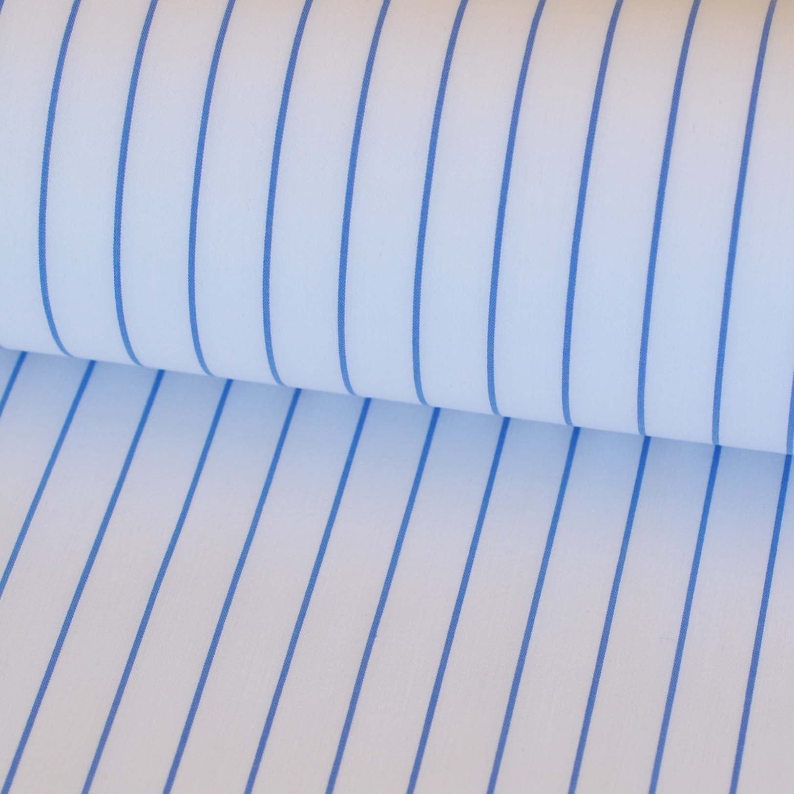 Cotton Shirting Fine Stripe in White with Narrow Blue Stripes