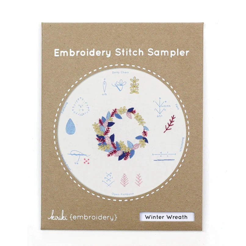 The Winter Wreath Embroidery Stitch Sampler is a great introduction to stitches used in Kiriki Press and other embroidery patterns.