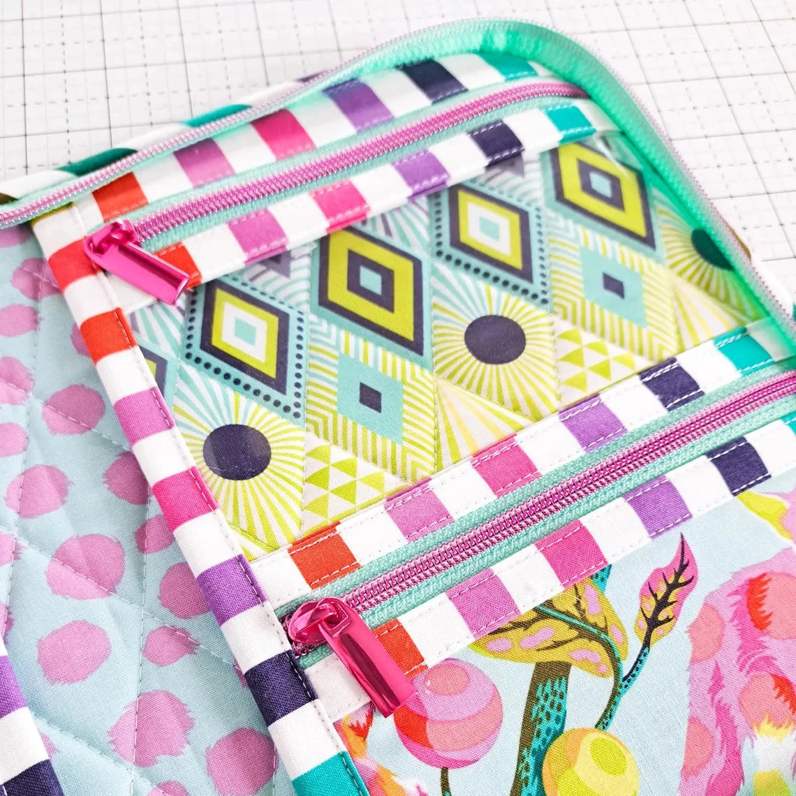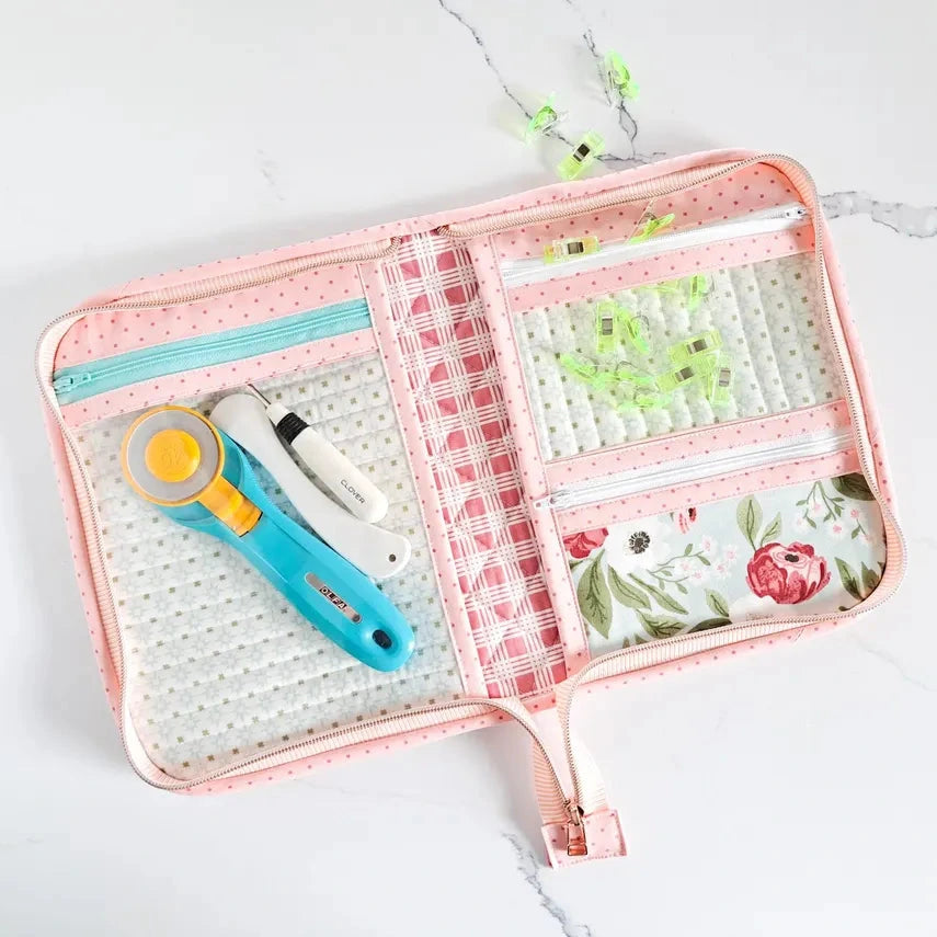 The Atlas Zipper Case is the perfect quilted organizer to keep your items contained and orderly. The inside includes two large slip pockets, one large zipper pocket, and two small zipper pockets that are great for storing sewing supplies, electronics, jewelry, makeup, or everyday essentials. The outside of the Atlas Zipper Case is secured with a zipper closure, keeping everything safe inside.
