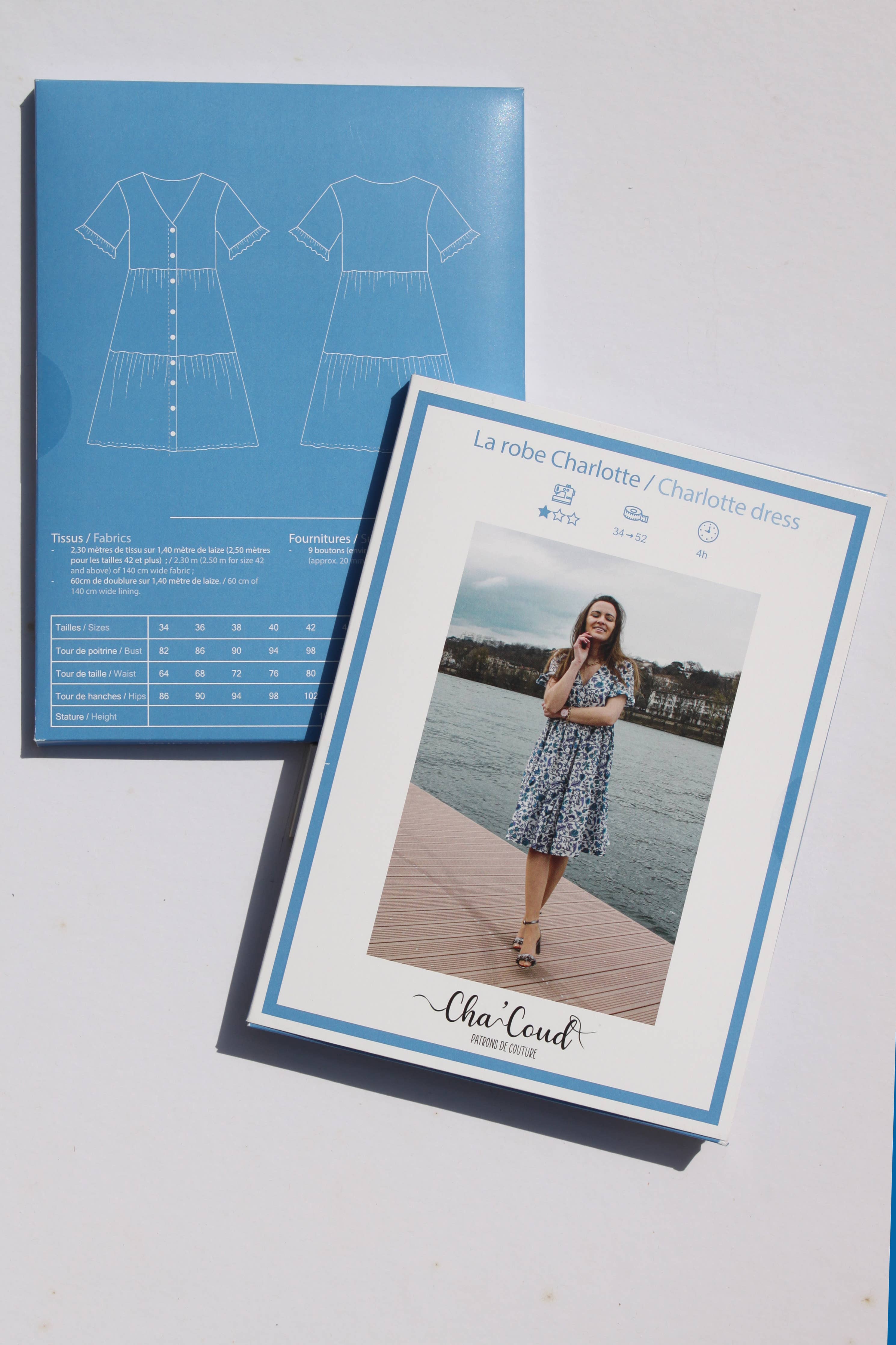 This model was imagined with Eve for her book "Le Vestiaire Créatif de Petite Bobine." It was Eve who wanted this model to bear my first name ❤️ Charlotte is the perfect dress for the spring/summer season. It’s quick and easy to make ! This button-up dress is both practical and easy to wear, the two gathered skirt tiers giving ease and volume. Charlotte features two sleeves finished by a ruffle.