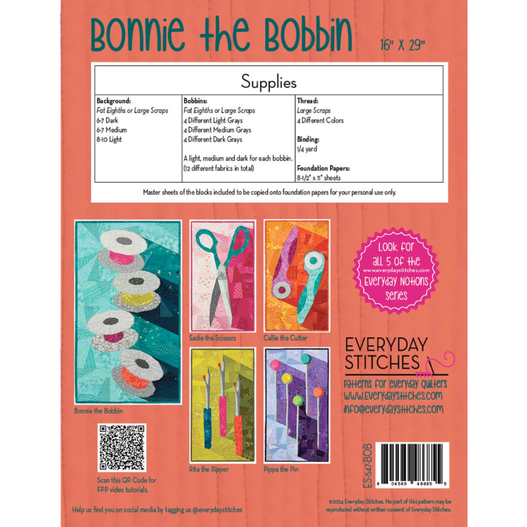 Bonnie the Bobbin Wall Hanging Paper Piecing Pattern