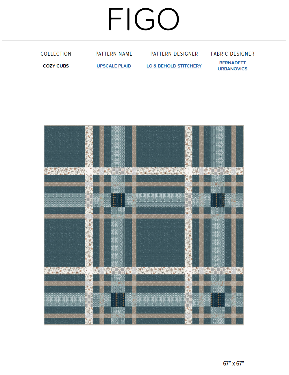 Create a unique and cozy throw sized quilt with this kit featuring fabric from Figo's Cozy Cubs collection. Upscale Plaid is a modern take on a traditional plaid pattern using alternating strips of color that appear woven together, while playing with a transparent effect.