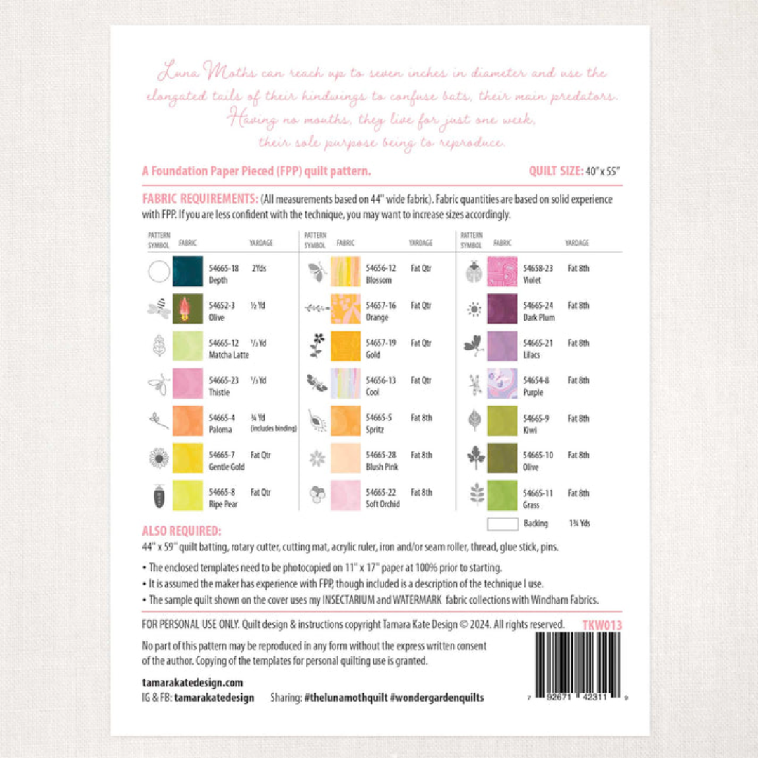 Tamara Kate Design Luna Moth Quilt Pattern