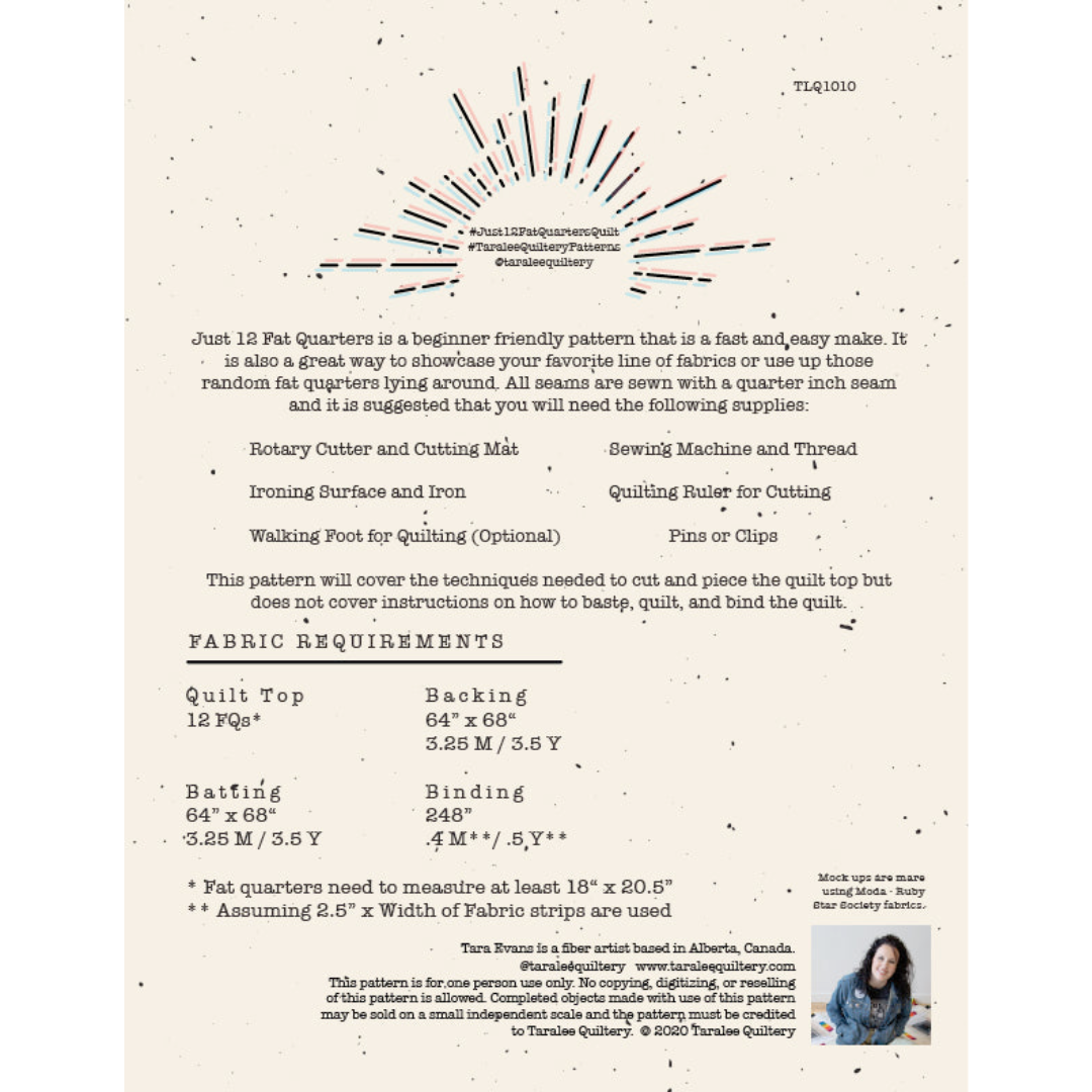 Taralee Quilts Just 12 Fat Quarters Quilt Pattern